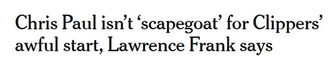 在当地时间周三下午的线上媒体见面会中,弗兰克表示,让保罗提前结束球队此次客场之旅并返家的决定,“并非因为球队战绩不佳……我们不会让克里斯-保罗来背锅。球队存在诸多问题,我们会针对战绩低迷的现状逐一解决每一个症结”。